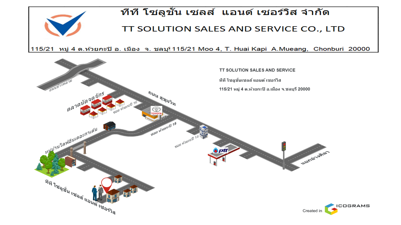 ทีที โซลูชั่น เซลส์ แอนด์ เซอร์วิส จำกัด 115/21 หมู่ 4 ซอย ห้วยกะปิ 15 ต.ห้วยกะปิ อ.เมือง จ.ชลบุรี 20130 Sale Support 092-273-0992
